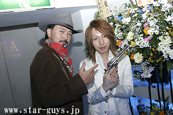 愛くんが、Daddyホールディレクターのピストルを持ち「ハイ、ポーズ」