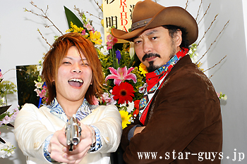 お次はDaddyホールディレクターとのツーショット!浬くん、Daddyの拳銃を借りて、カメラマンを狙います。