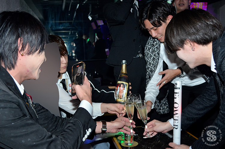 豪華なシャンパンタワーが輝きを添え、店内は祝福と歓声で満たされた特別な一夜となりました🎵