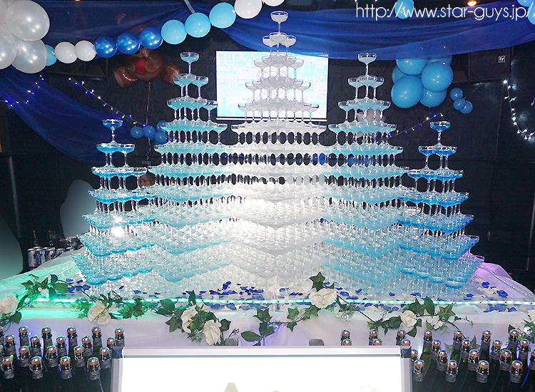店内中央で待ち構えていたのは…ドデカいバースデーシャンパンタワー!!