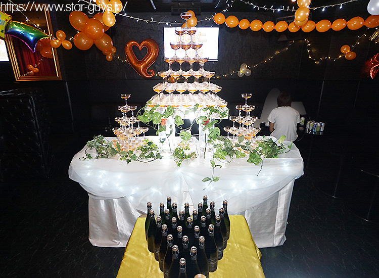 メインイベントのシャンパンタワーの前で、今夜の主役・仁MGのピンショットをいただき取材スタートです♪
