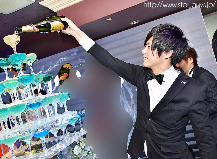 そしてメインイベントタワーがスタート♪ 姫と王子がタワーへシャンパンを入れていきます!!