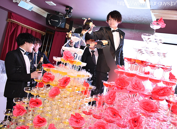 いよいよメインイベントのシャンパンタワーが始まります! 星稀代表と姫様による開栓が響き渡る!!