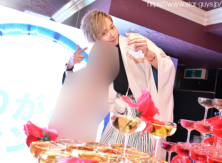 姫様からの直ビンイッキを華麗に飲み干しながらタワーにシャンパンを注ぎ続けるプロフェッショナルっぷりを激写笑