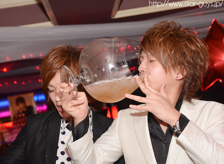 シャンパンコールが始まりましたよ!!特大グラスに注がれたシャンパンを主役がイッキ~