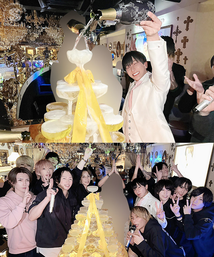高級シャンパン「エンジェルブルー」がおろされるなど