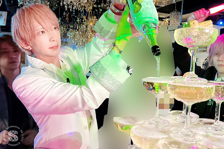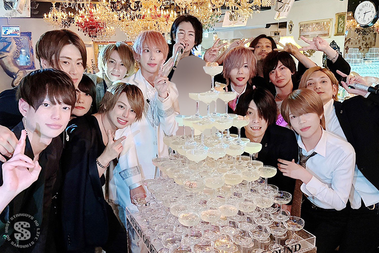 景気づけとばかりに大也 代表代行の姫様からシャンパンタワー♪