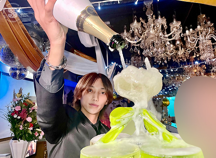 スタッフも姫様も全員でシャンパンを注ぎ込み🍾