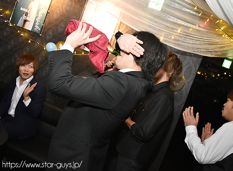 隆斗社長の席でお祝いシャンパンがおろされましたよ! ヒロくん自らがシャンパン開封★☆彡