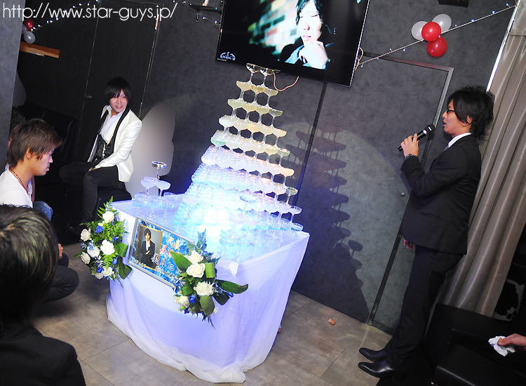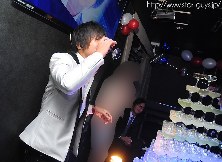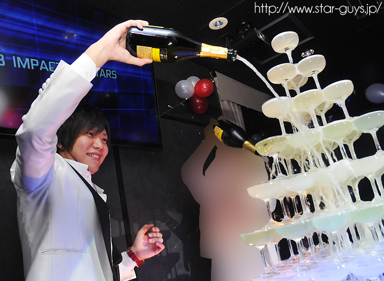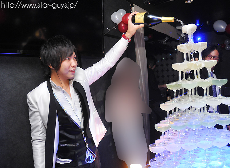 指名を受けて隆斗さんもシャンパンを流し込んでタワー完成をお手伝い♪