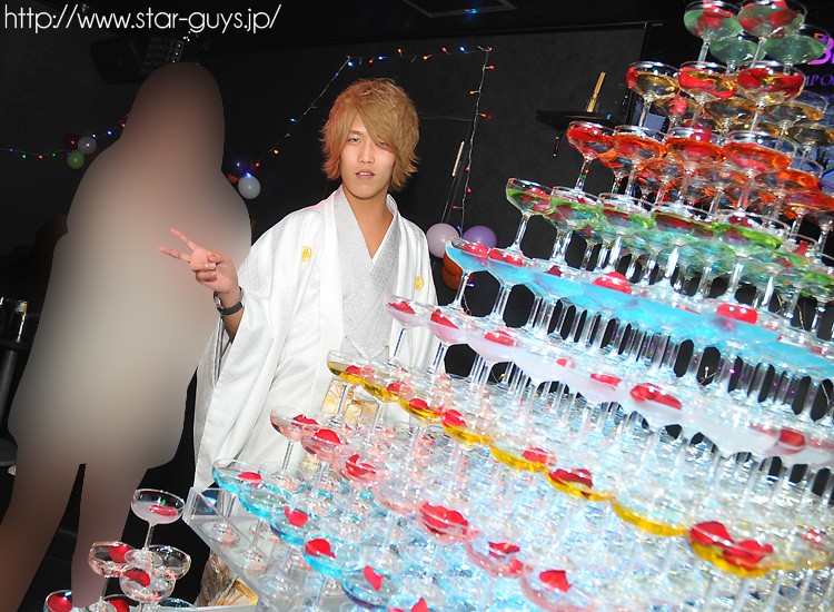 フロアに設置された巨大で豪華なシャンパンタワーと一緒に主役の鬼虎主任のピンショットを頂戴しました♪
