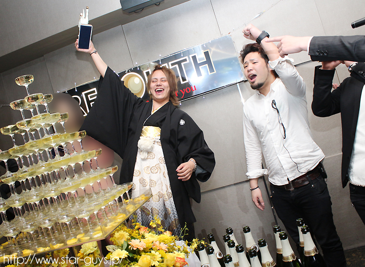 初バースデーイベントにして、初のシャンパンタワー!来年は、さらなる高みを目指します!!
