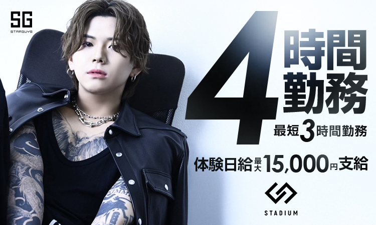 | 経験者の方へ | 実際にホストを経験した方は、ノルマ、長い勤務時間、週1日だけの休日、厳しい上下関係、少ない稼ぎ、など思った世界と違かったといった事を考えた事があるかもしれません。 それが後々皆さんの満足に還元されると言うのであれば、我慢してでも働くと言う選択肢もあると思います。 しかしながらSTADIUM(スタジアム)では、働く皆さんの本当の満足度を重視し、早い段階から働らく仲間達とお店が共に充実できる様に、一緒に考えます。 今の時代に合わないシステムなら当然変えていけばいいと考えております。 若い運営陣だからこそ出来る決断があり、またそこにあなたという力が加わればさらにいいお店になると考えております。 新しい環境創りに興味を持った方は、ぜひお気軽にご連絡下さい!! |