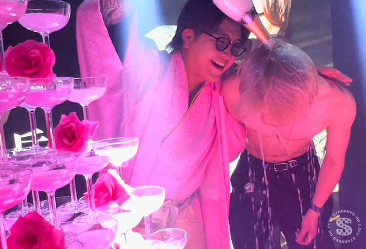 ド派手なシャンパンタワーや高級シャンパンなどなどダイナミックなパーティーの雰囲気が