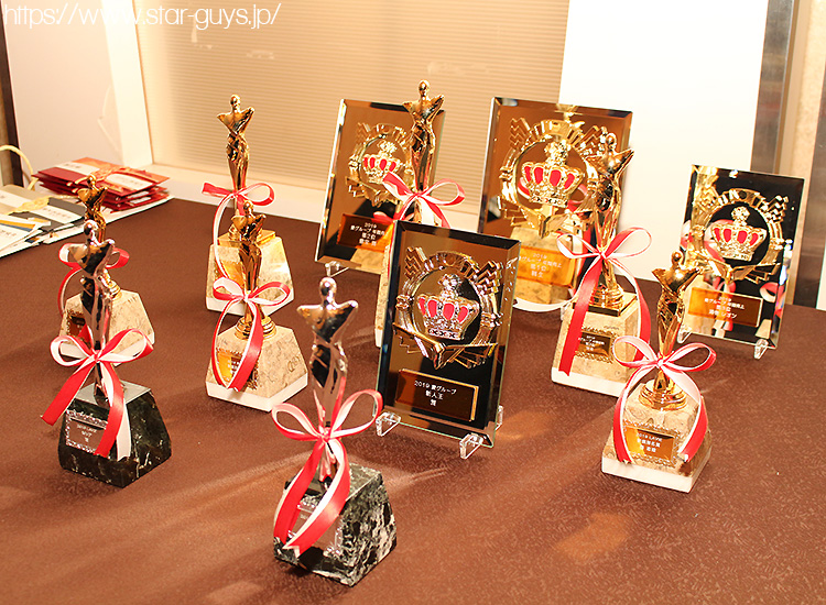 壇上横には年間表彰のトロフィーがずらり!! 果たして栄冠をつまむのは??