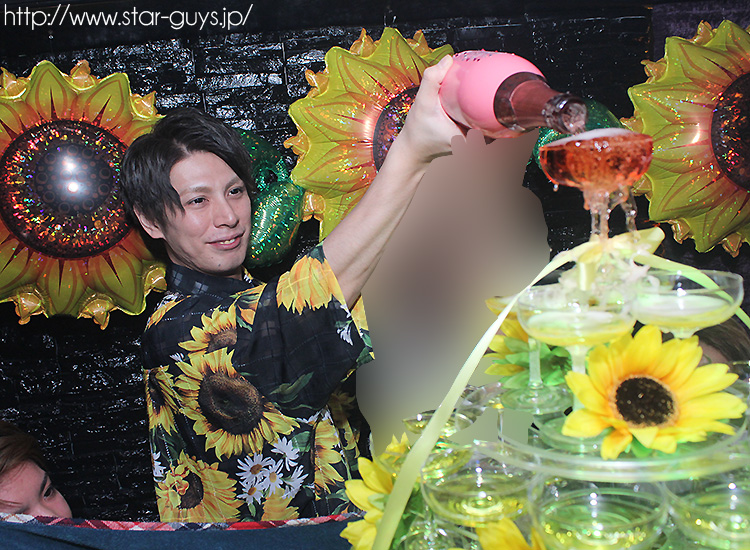 そしてイベントはメインのシャンパンタワーへ!!ひまわりに囲まれて、主役の一沙リーダーとお姫のツーショット撮影♪