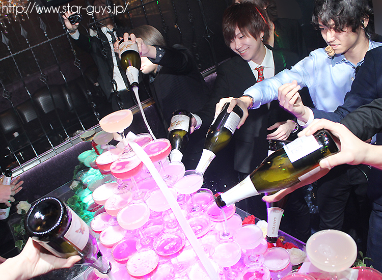 王子の麗支配人が豪快にシャンパンをタワーに注いでいきますよ!!