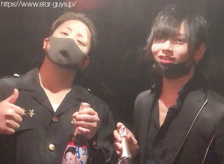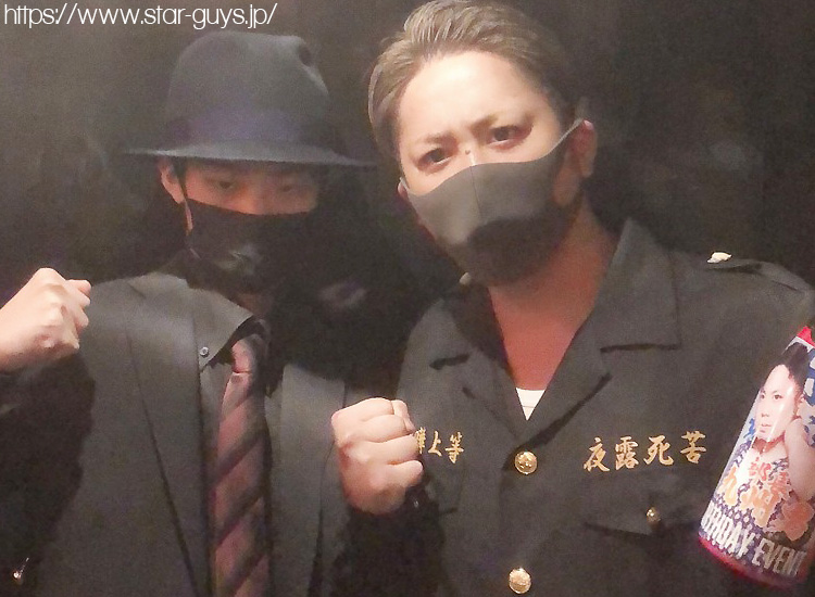 本日の主役・九州男部長は特攻服で登場♪ さっそくメイ幹部補佐との記念2ショットをGET!!