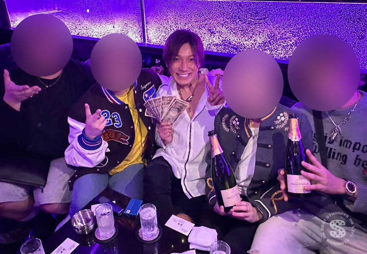 太陽の名を冠するに相応しい太陽社長。その明るく温かな笑顔はどんな暗闇も照らす灯台の光のようです☆社長でありながらもスタッフとの距離感はまるで友人のよう。誕生日のこの日は、輝く彼を中心に姫たちだけでなく、同業者も多数参集。彼らもまた、シャンパンの泡と共に社長への祝福を豪華に飾りました!!
