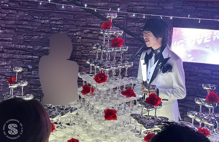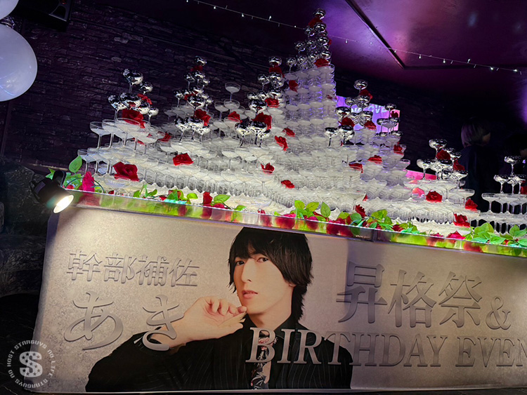 秋 幹部補佐の昇格祭&BIRTHDAY EVENTが盛大に開催されました。会場には豪華な赤いバラで飾られたシャンパンタワーが登場し、華やかな雰囲気に包まれました。仲間や姫様たちからの祝福が続き、感動的な夜となりました。