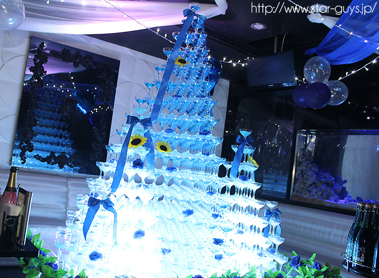 本日は湊幹部補佐のバースデーイベント♪ブルーに染まった超特大シャンパンタワーでお祝いですよ♪