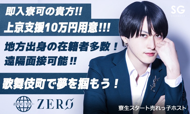 | SINCE YOU...ZEROが求める人材像 | 1. 一生懸命になれる人材 数千人のホストを見てきて稼ぐ人が全員もっている共通点は、一生懸命取り組める事!! 2. 積極的な人材 接客や人間関係はマニュアルではありません! 何事にも積極的に取り組める人は魅力的!! 3. 継続する事ができる人材 「成功するのは結果が出るまで続けただけ」という言葉があるように、積み重ねて行く事ができる人! 4. 協調性のある人材 スポーツでも仕事でも1人では成し遂げられません。 チームを大切にし個性を活かしていきましょう! 5. 誠実な人材 成績が良ければ良いという事は絶対にあり得ません。 誠実に仕事や人間関係と向き合える人材!! |