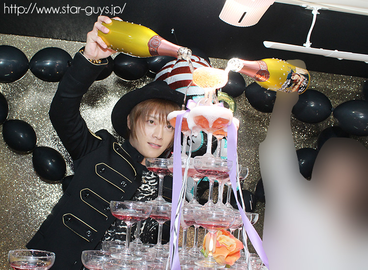 まずはコチラ!!我らがセナ代表のバースデーを飾るにふさわしい超豪華なシャンパンタワーでございます!!