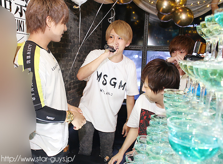 続いてレン支配人が登場〜♪ブルーのシャンパンタワーと白の衣装がとっても爽やかです!