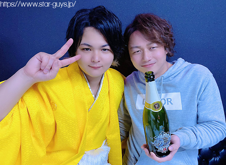 たくさんのお祝いシャンパンに囲まれ、よつぎ幹部補佐の素敵な笑顔もいっぱいGETできました!!