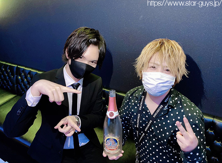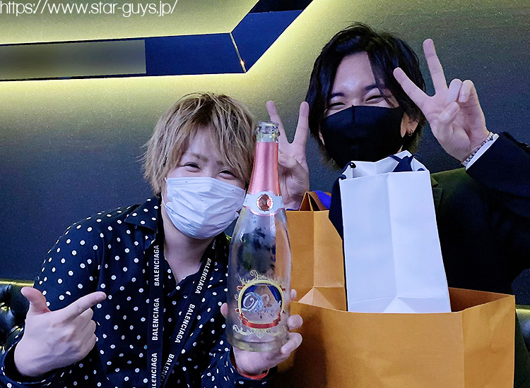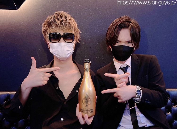 こちらのお席では高級シャンパン「アルマンドゴールド」が!! 黒と白でクールにキマってるお二人、ハリウッド映画みたいです(*∩ω∩)
