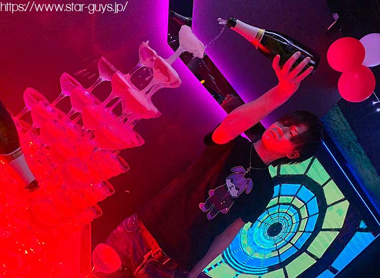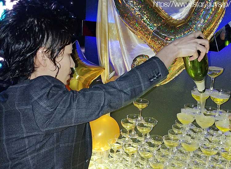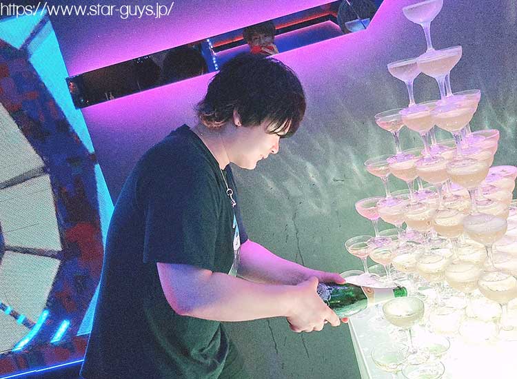 2日目は全員スーツで!! またまたタワーがあります!! 大地代表取締役のオリシャンと大量のシャンパンが!!